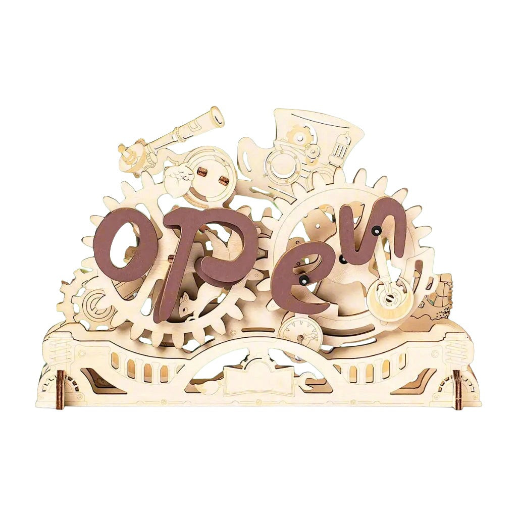 🏪 À la recherche d’un panneau original pour votre commerce ? Ce kit en bois à assembler soi-même vous permet de créer un panneau "Ouvert/Fermé" mécanique, actionné par un ingénieux système d’engrenages. Une pièce artisanale qui attire immédiatement l'attention et ajoute une touche unique à votre boutique, bureau ou espace de travail.