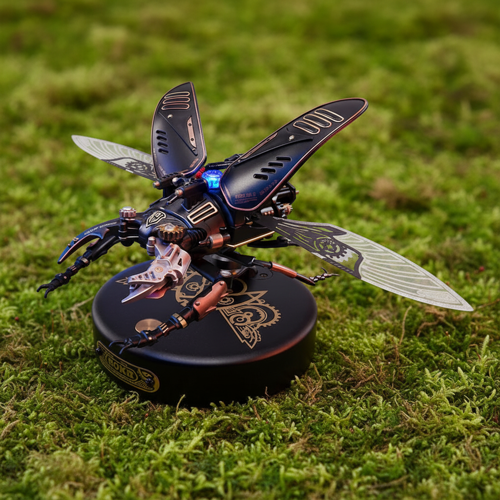 ⚙️ Vous aimez les créations mécaniques à l’allure futuriste ? Le Scarabée Mécanique est une maquette inspirée du rhinocéros des tropiques, revisitée dans un style steampunk spectaculaire. Ses ailes métalliques gravées et sa lumière LED bleue donnent vie à un insecte mécanique d’une précision fascinante.