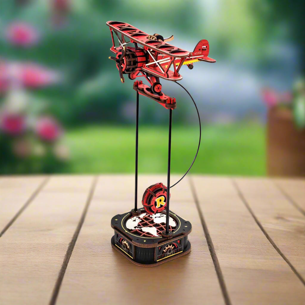 Design d'inspiration vintage : le biplan rouge au style rétro rend hommage aux avions de légende, tout en apportant une touche décorative unique.