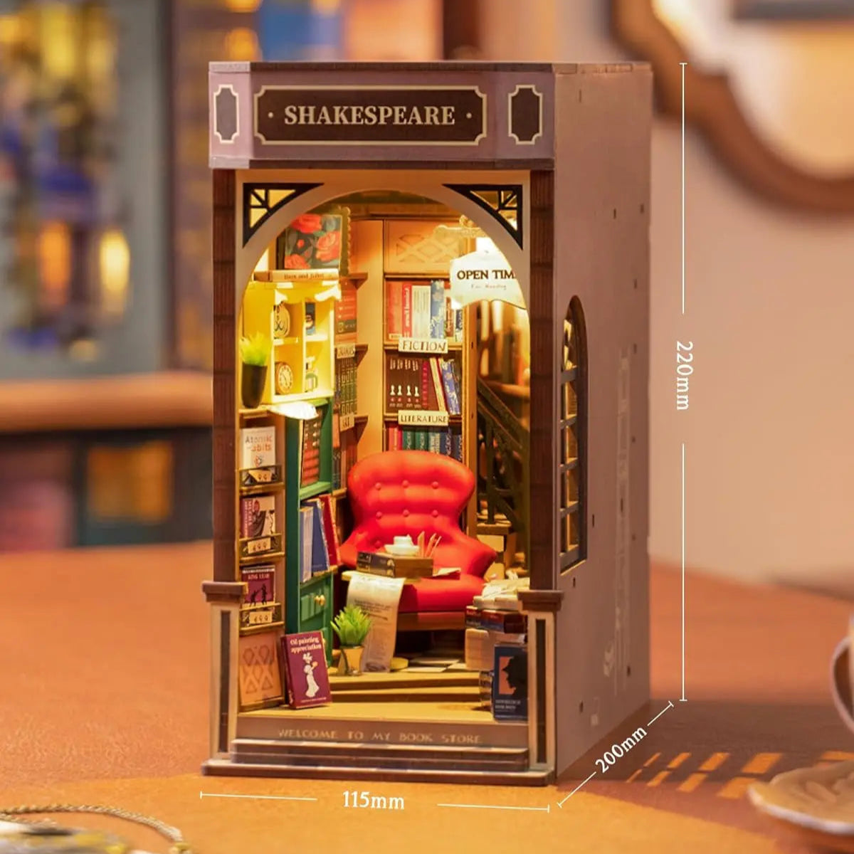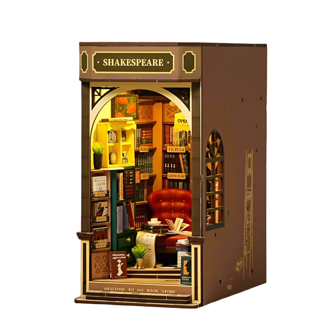 📖 Entrez dans l’univers des librairies anciennes avec cette maquette en bois inspirée de la célèbre Shakespeare & Company ! Ce décor miniature reproduit l’ambiance chaleureuse et feutrée des grandes librairies classiques avec ses étagères remplies d’ouvrages, son fauteuil confortable et son éclairage tamisé.