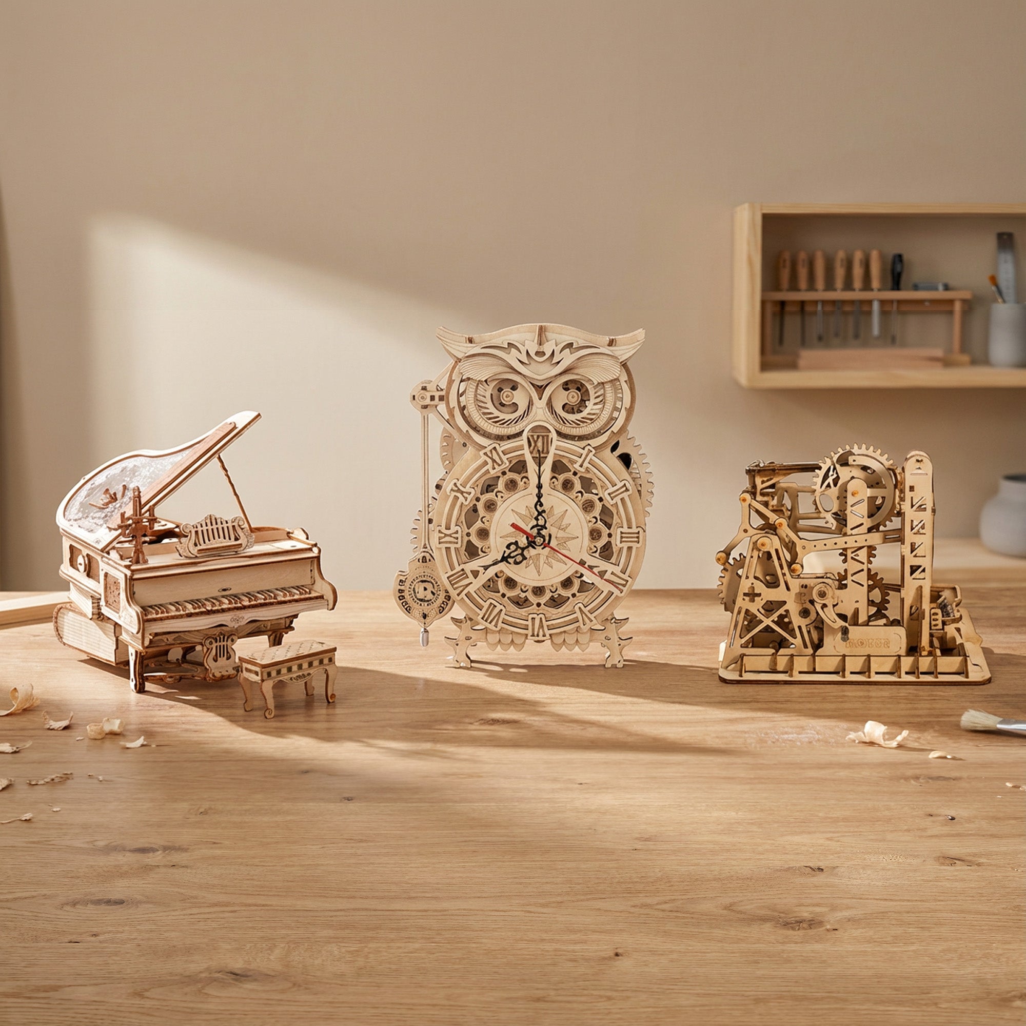 Bienvenue dans l’univers mécanique et technique, l’endroit où l’on ne fait pas que monter une maquette : on comprend le mouvement. Ici, chaque puzzle 3D en bois est une expérience plus exigeante, pensée pour celles et ceux qui aiment les engrenages, les mécanismes visibles et la précision. Horloges à balancier, circuits à billes, manèges animés ou machines ingénieuses : tout est conçu pour offrir un montage captivant, et surtout la satisfaction rare de voir un objet fonctionner pour de vrai.