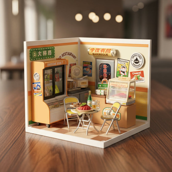 🍢 Envie d’un projet miniature plein de charme ? Le Barbecue de Minuit recrée l’ambiance chaleureuse d’un petit restaurant de rue asiatique, baigné de lumière et d’odeurs imaginaires. Cette maquette miniature réaliste séduit par son décor détaillé, ses plats miniatures et ses enseignes colorées.